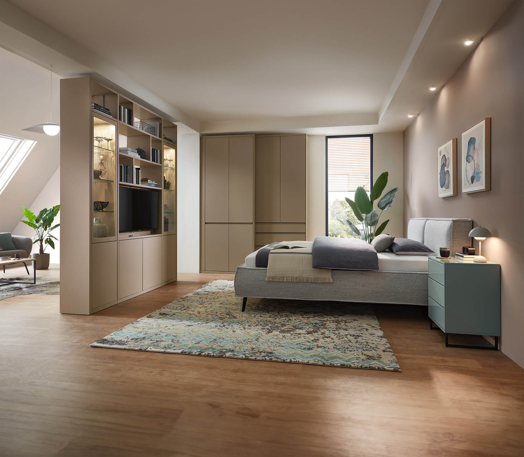Varianta steht für flexible Möbelprogramme mit klarer Formensprache und spürbarer Qualität. Fronten, Korpusfarben, Griffe, Beleuchtung und Maße lassen sich harmonisch kombinieren – vom filigranen Lowboard bis zur raumhohen Bibliothek. Das Ergebnis: ein stimmiges Gesamtbild, das ästhetisch wirkt und im Alltag überzeugt.
