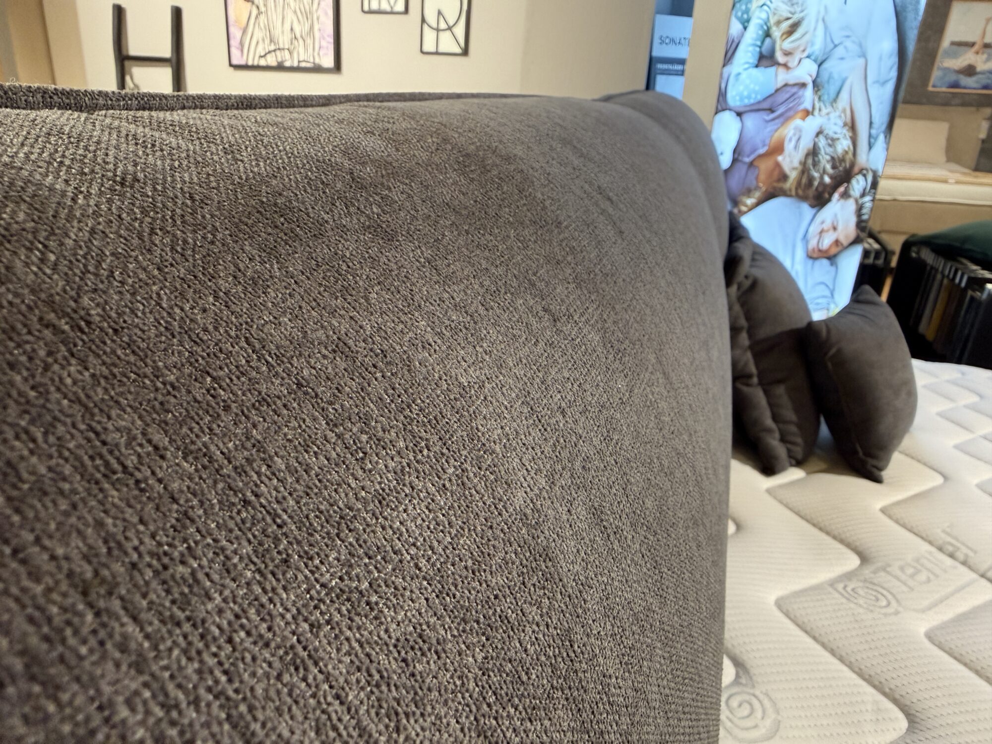 Das Boxspringbett Interliving 1414 zeigen wir in einem dunkelgrauen, kuscheligen Bezug. Das Kopfteil hat einen seitlichen Überstand zu der Liegefläche und lädt zu gemütlichen Leseabenden im Bett ein. Der Viscoschaumtopper ist für alle die gerne weich, warm und wohlig liegen wollen. Mit einer Liegefläche von 180 x 200 cm haben alle genug Platz im Bett.