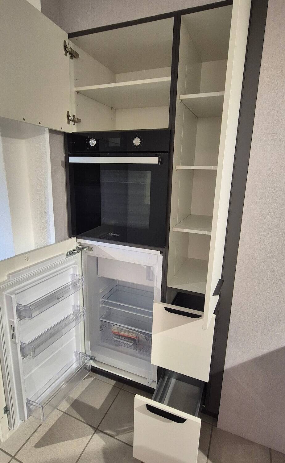 E-Geräte: NEFF: Geschirrspüler; Bauknecht: Backofen, Induktionskochfeld, Kühlschrank; Franke: Dunsthaube, Blanco: MB, Einbauspüle