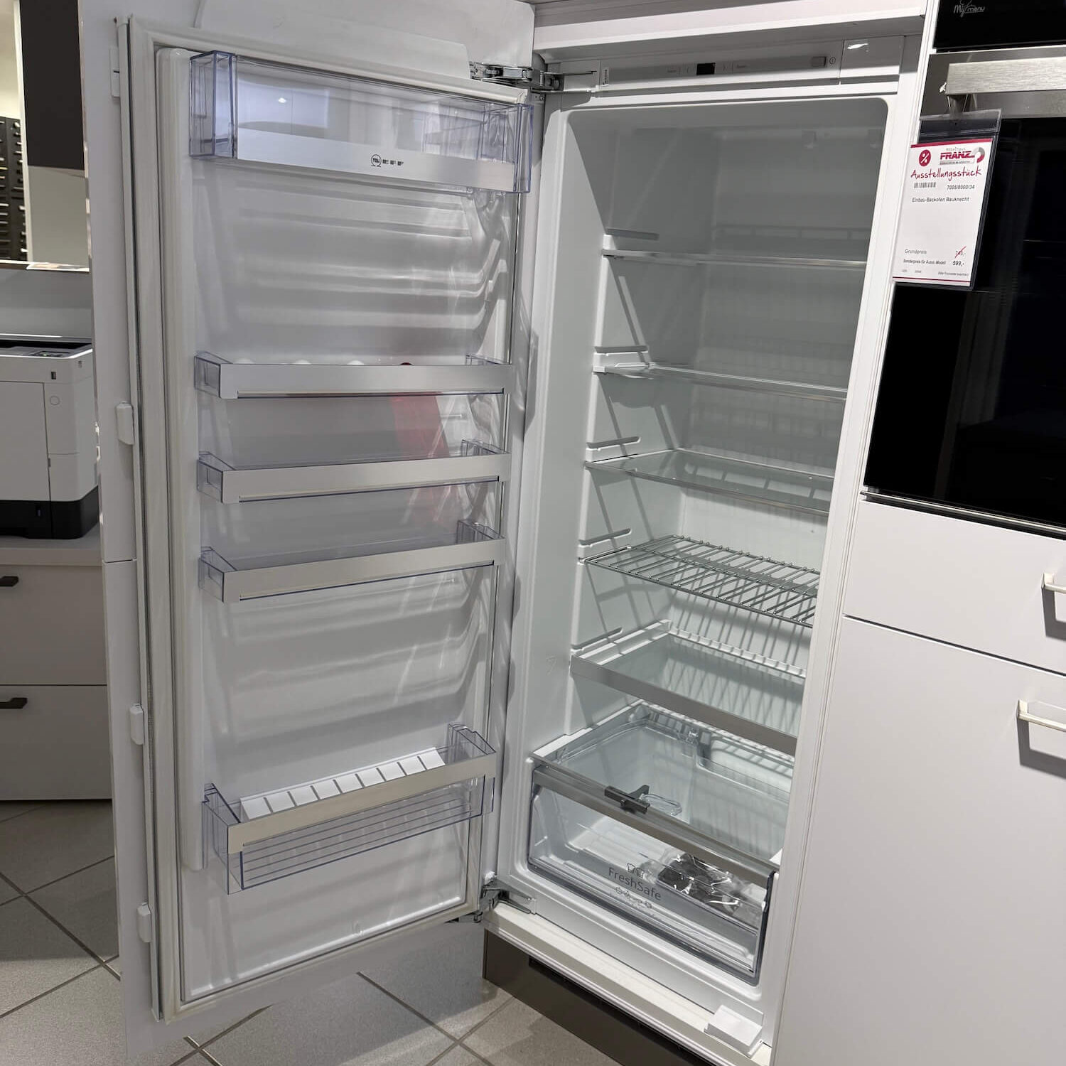 E-Geräte: Geschirrspüler und Backofen von Bauknecht, Kühlschrank NEFF, Muldenlüfter von BORA, Einbauspüle Franke, Armatur Blanco, Müllsystem und LED-Beleuchtung
