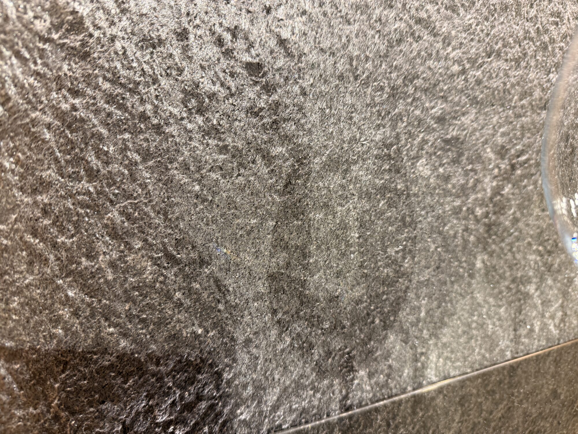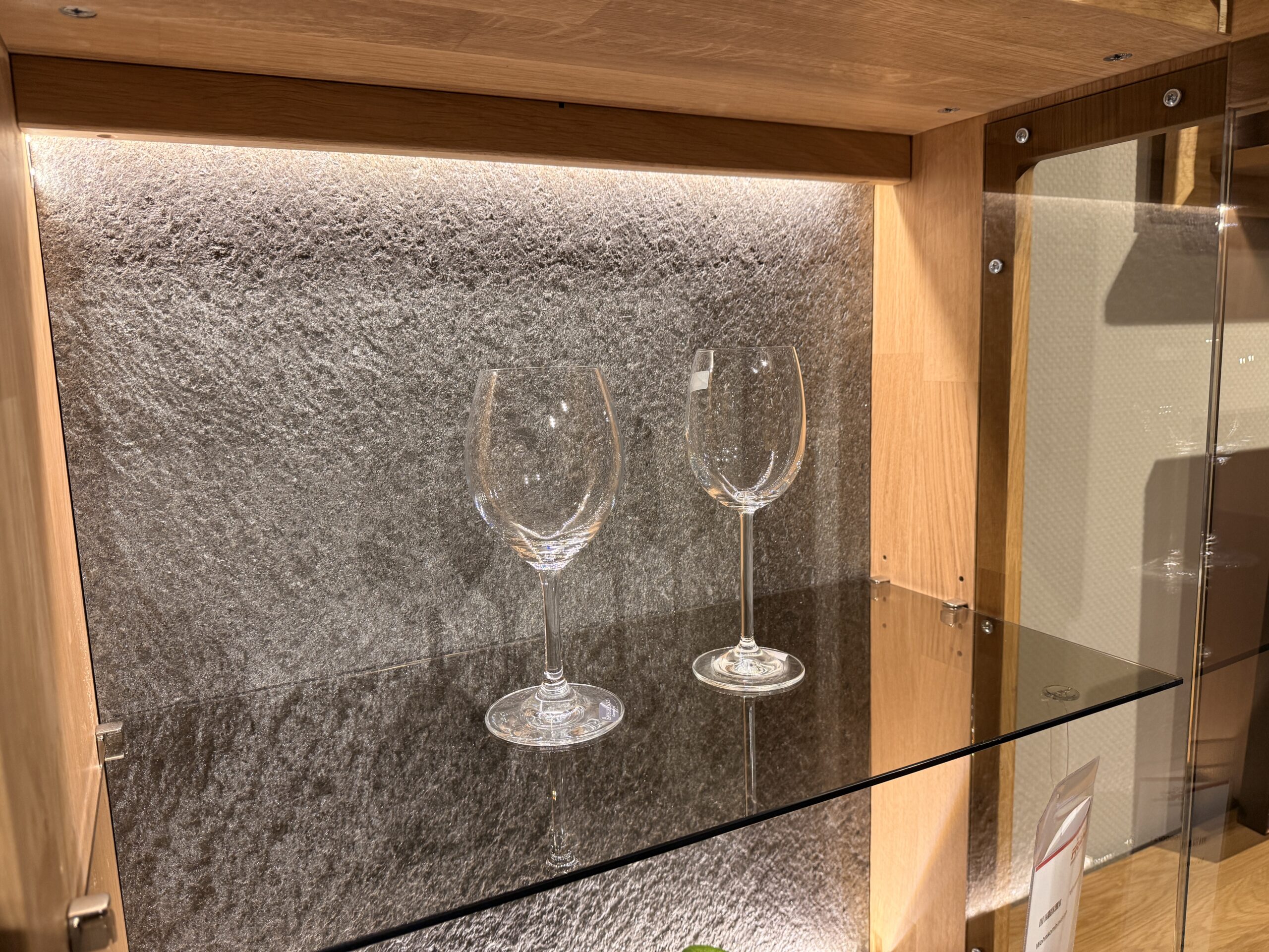 Rückwand: Stein Veneer Alpin, Frontglas: Parsol grau