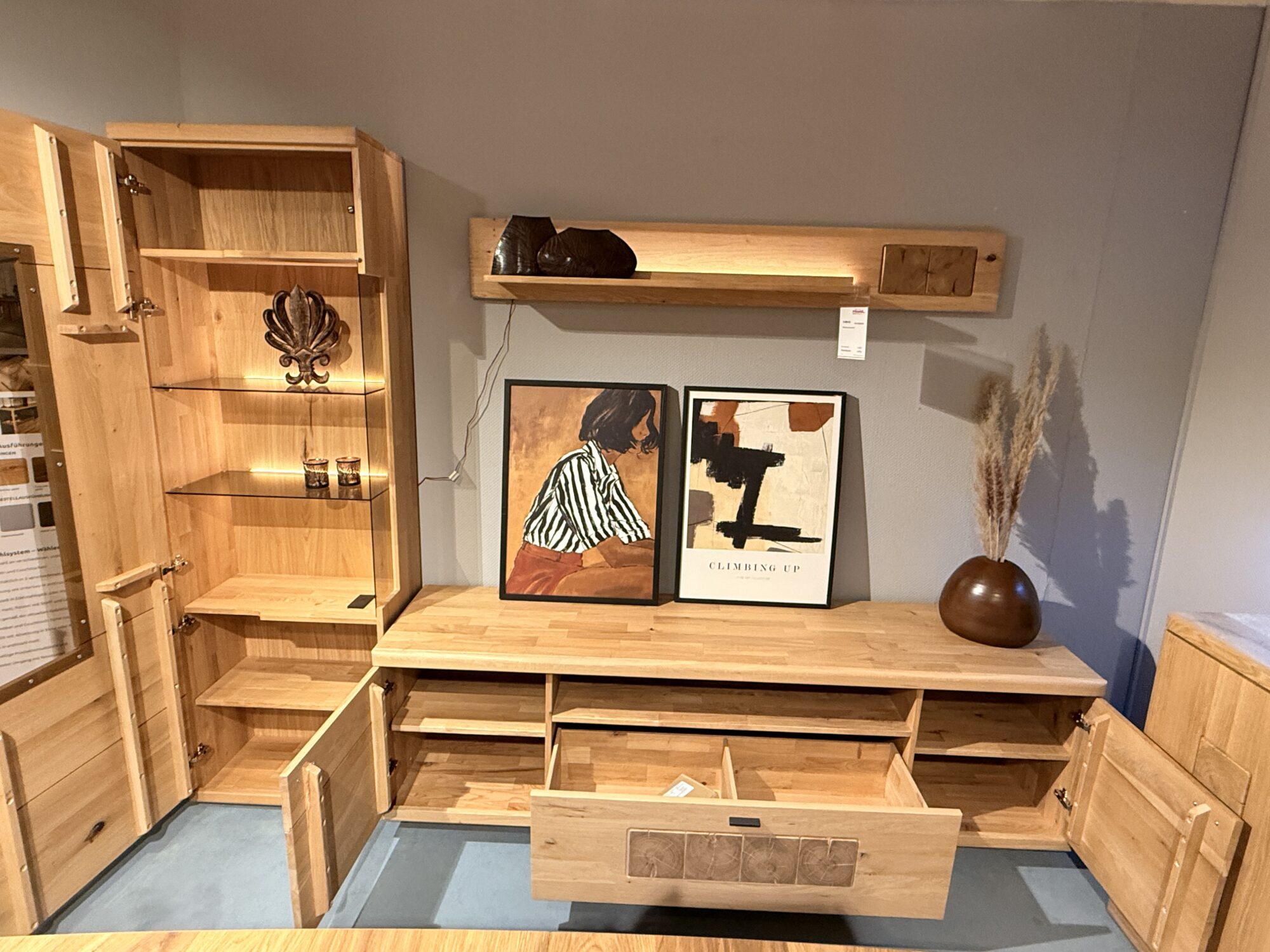 – TV-Element, Breite 205 cm, mit 2 Türen und 2 Schubkasten, ein offenes Fach